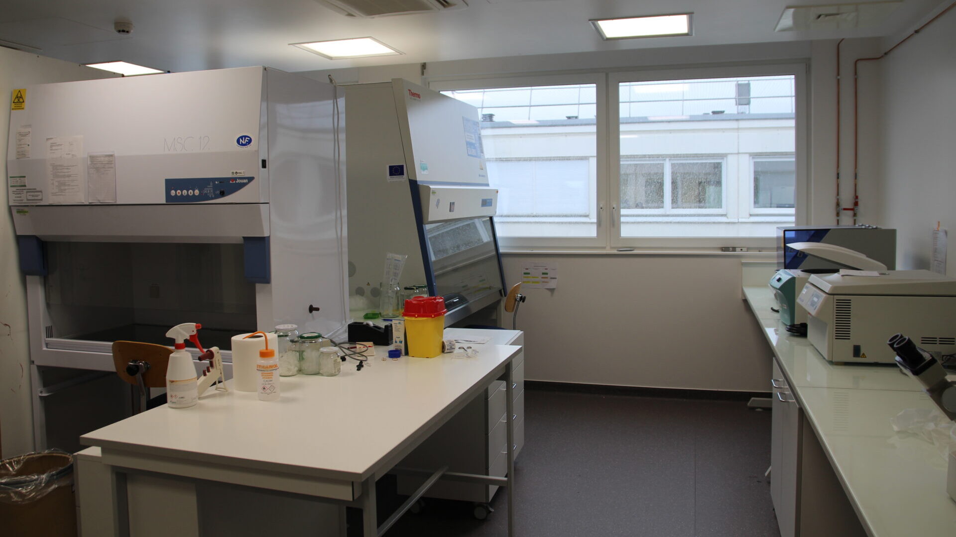 - Mise à disposition d’espace de travail de niveau de biosécurité 2 (BSL2) pour la virologie, la biologie cellulaire, la microbiologie (PSM de type II, étuves, incubateurs, centrifugeuses, etc.).