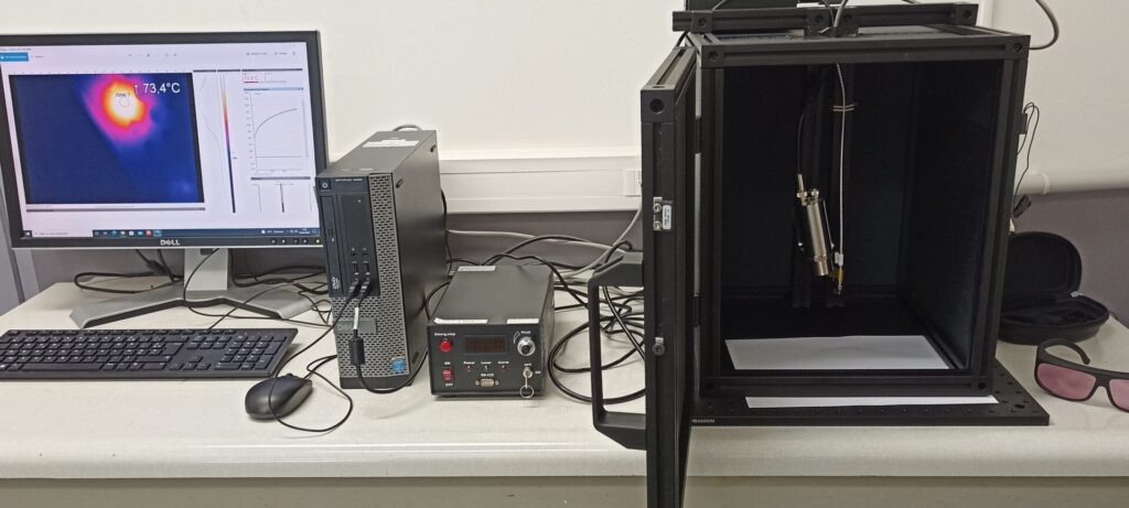 Une caméra thermique permet de mesurer l’évolution de la température suite à une irradiation (exemple avec un laser 808 nm 10W).