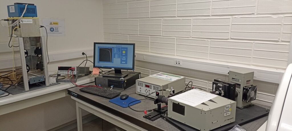 Simulateur solaire norme AM1.5 (LUMARTIX Lumixo) qui permet de mesurer les courbes I/V afin de déterminer le rendement de la cellule solaire.