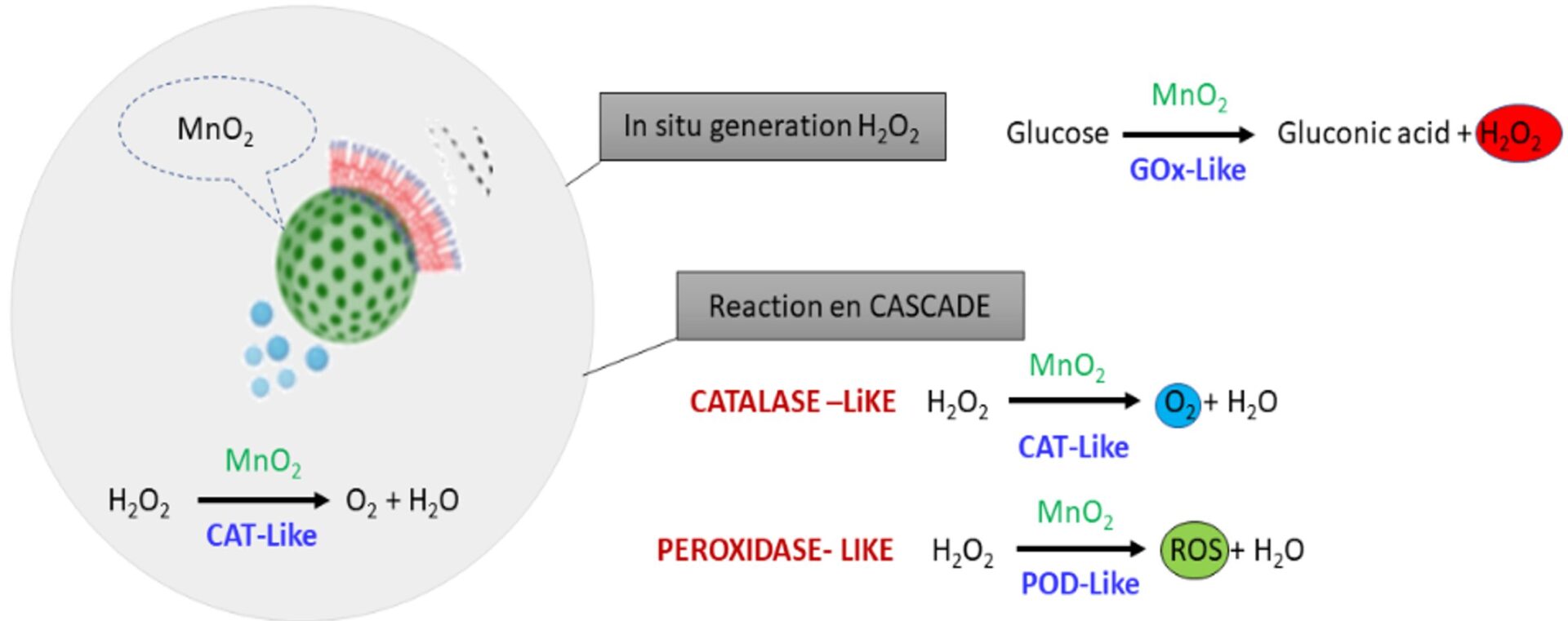 BioCATZyme project will develop an innovative nanocatalytic tumor therapy based on a biomimetic cascade reaction, utilizing a multifunctional nanoplatform composed of mesoporous MnO₂ nanoparticles. These nanoparticles exhibit glucose oxidase (GOx-like) and peroxidase (POD-like) activities, enabling the in-situ generation of hydrogen peroxide (H₂O₂) from glucose. The generated H₂O₂ can be decomposed into oxygen (O₂) bubbles, propelling nanomotors to enhance tumor penetration. Additionally, the system utilizes near-infrared (NIR) light activation for controlled photothermal therapy, further boosting reactive oxygen species (ROS) production. The integration of these catalytic nanozymes offers a synergistic effect, combining self-supplied H₂O₂, photothermal therapy, and autonomous motion, which improves therapeutic efficacy while minimizing side effects. This novel approach will enhance targeted cancer treatment, increase bioimaging sensitivity, and overcome challenges in nanomaterial diffusion within tumors. BioCATZyme presents a promising strategy for advanced, efficient, and precise tumor therapy.