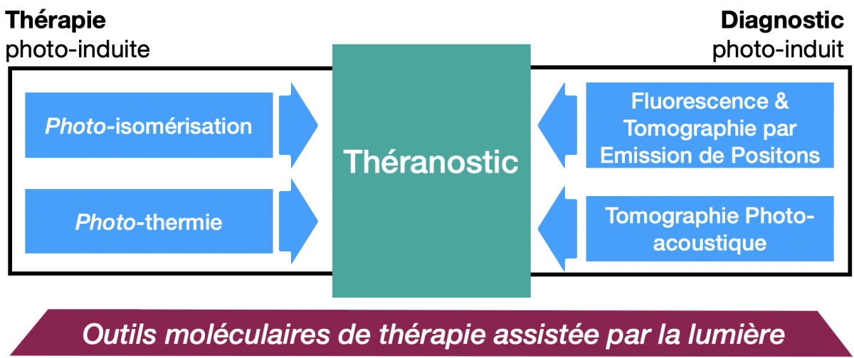 La lumière est aujourd’hui à la base de nombreuses applications répondant à des défis sociétaux majeurs tels que l’environnement et l’énergie, mais également la santé. Son utilisation à des fins de diagnostic ou de traitement constitue le cœur de la photomédecine moderne, un domaine d’expansion croissante. Ceci nécessite généralement d’utiliser des agents moléculaires photoactifs adaptés, capables de convertir efficacement l’énergie lumineuse en onde, chaleur, luminescence ou encore en mouvement. Dans ce contexte, l’objectif principal du projet « Fire Light » est le développement de nouveaux outils moléculaires de photodiagnostic ou photothérapeutiques à visées anticancéreuses et antibactériennes reposant sur différents types d’évènements photoinduits.